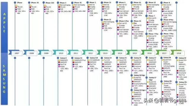图6显示了Apple在其iPhone和三星Galaxy S系列手机中采用技术的变化